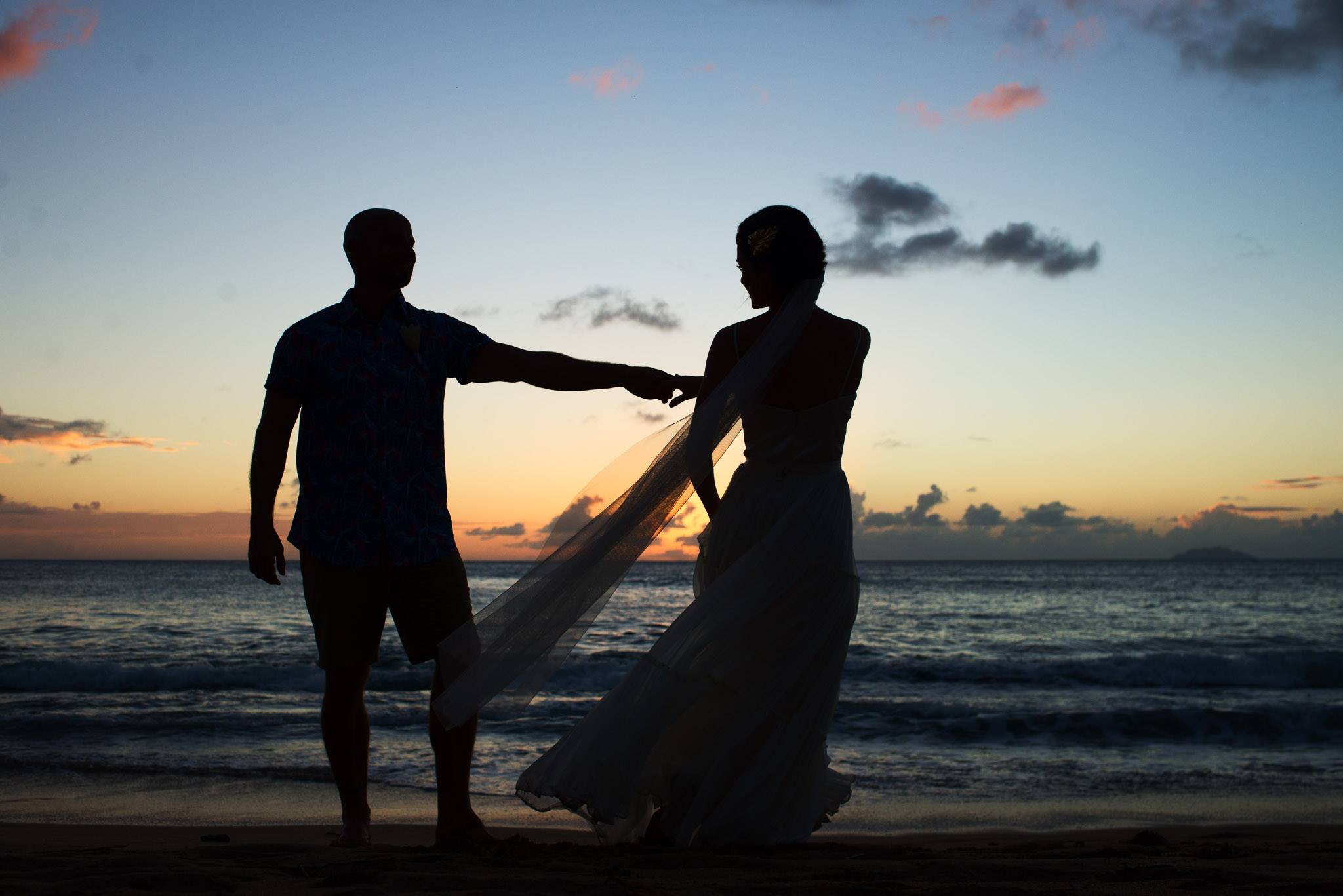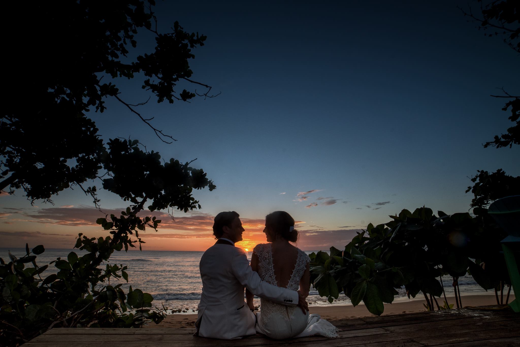 Padmini and Tom had a just incredibly colorful and bright sunset during their wedding ceremony at Tres Palmas Inn and Villas in Rincon, PR. Although we don’t generally recommend that your wedding ceremony take place quite this late in the evening, in their case I’d say it worked out! Check out how vibrant and colorful the sunset was for their beach wedding: