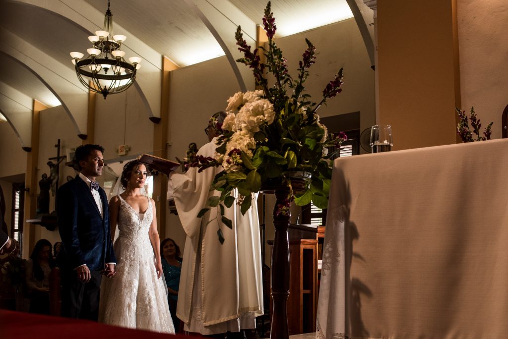 We are so excited to share with you this collection of emotional photographs from the wedding of Glenys and Errol. We have been looking forward to this wedding for a long time, finally returning to the beautiful Parroquia Nuestra Señora de La Monserrate Church in Moca, PR. This church in Moca is spectacular, with a long sweeping staircase leading up, and a wide open interior. Errol travelled all the way to the island from Australia, where he lives and works. Glenys grew up in Moca, so there was no shortage of family and friends present at their celebration. Sonia Gregory Coodinadora was their wedding planner, and she did a fantastic job as usual. Sonia is fantastic – super organized, was in touch with us before the wedding to make sure we were all set regarding timelines, etc., and she created a gorgeous wedding for Glenys and Errol.