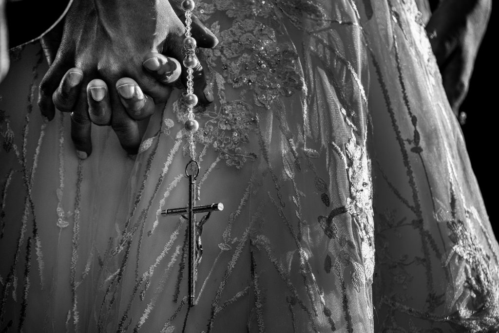 We started our day in Moca at the family house where Glenys grew up. It was special to see the hallway where her families wedding photos hang, knowing that hers would be there soon. Everyone was so welcoming and warm towards us as we arrived, ensuring we were well fed and comfortable. Their house is beautiful, and there was plenty of great window light and space for us to move around. It’s always great to start our days like this, taking the time to create interesting detail photographs of importance or significance, acquaint ourselves with family and friends, and build up into a space of more energy and time constraints. Glenys loves pugs, so when Frances discovered their pug statue, she knew it would make for a fun way to photograph the rings.