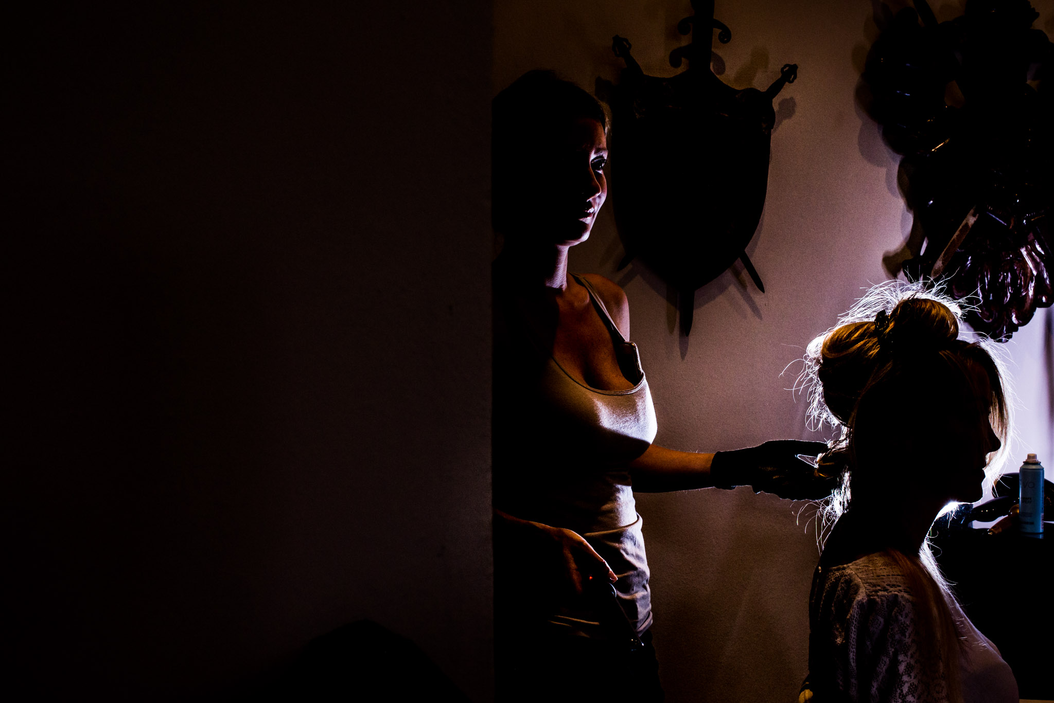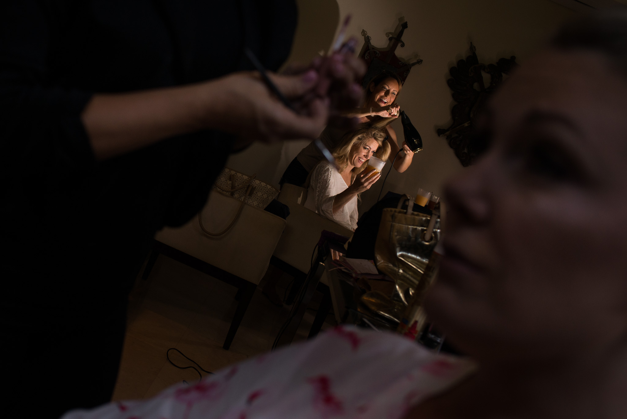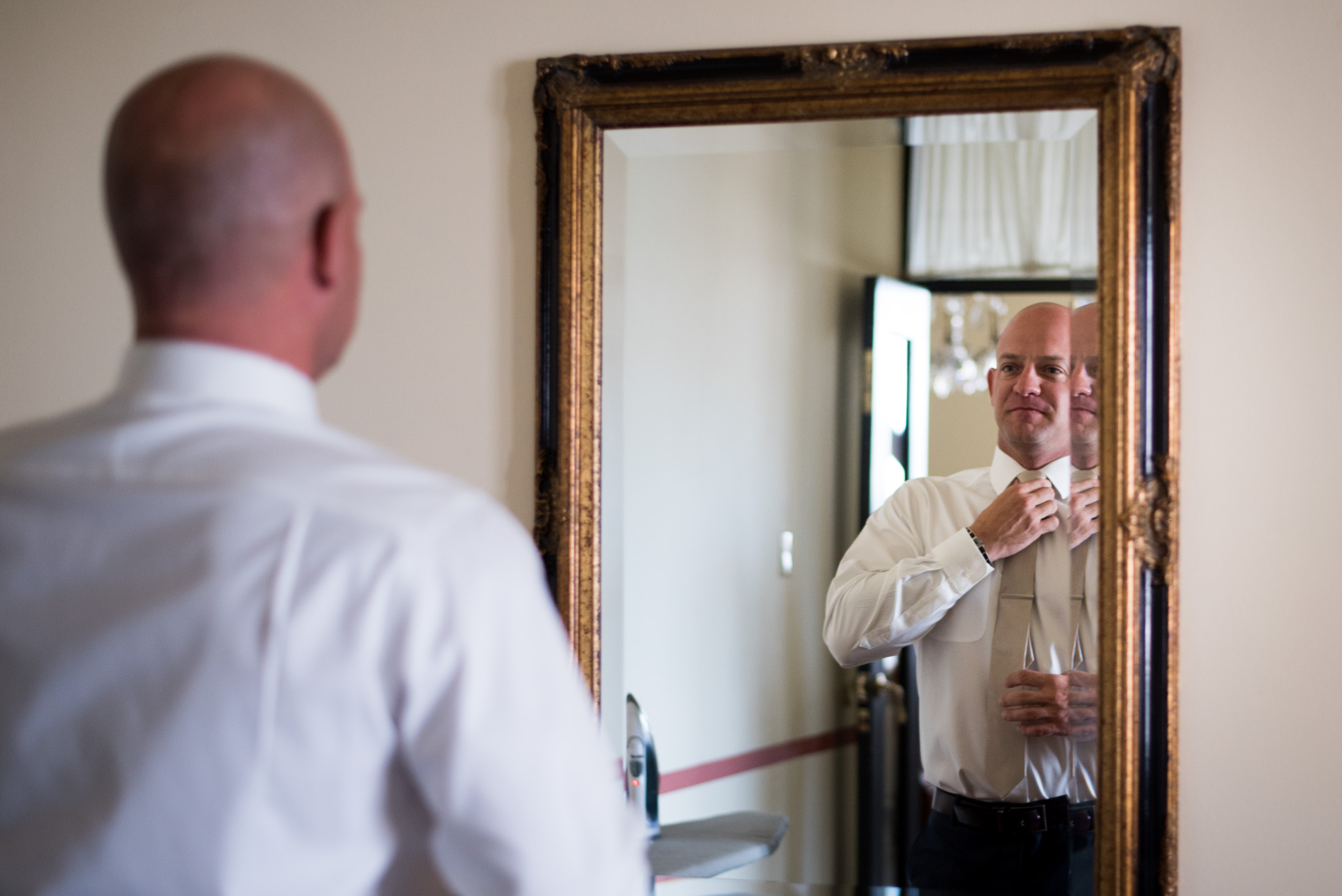On wedding day Jene was getting ready at a house a couple blocks away from El Convento San Juan, and it was a very classic Old San Juan style home, built with completely closing large wooden doors and fixed shutters with wrought iron grates over the top. We did take the time to do some nice portraits of Jene in front of the light from one of these doors, and we are in love with the dramatic look of these images. Dennis got ready at El Convento, first hanging with the boys at the bar while other were at the pool, and finally moving to the bridal suite, where he and Jene would stay that night. The bridal suite in El Convento San Juan is really a gorgeous location for natural light photography. There is a large window inset with walls over a foot thick, in the fortified style that is common in Old San Juan. We decided on groomsman photos in front of the main window to take advantage of the rich natural light.