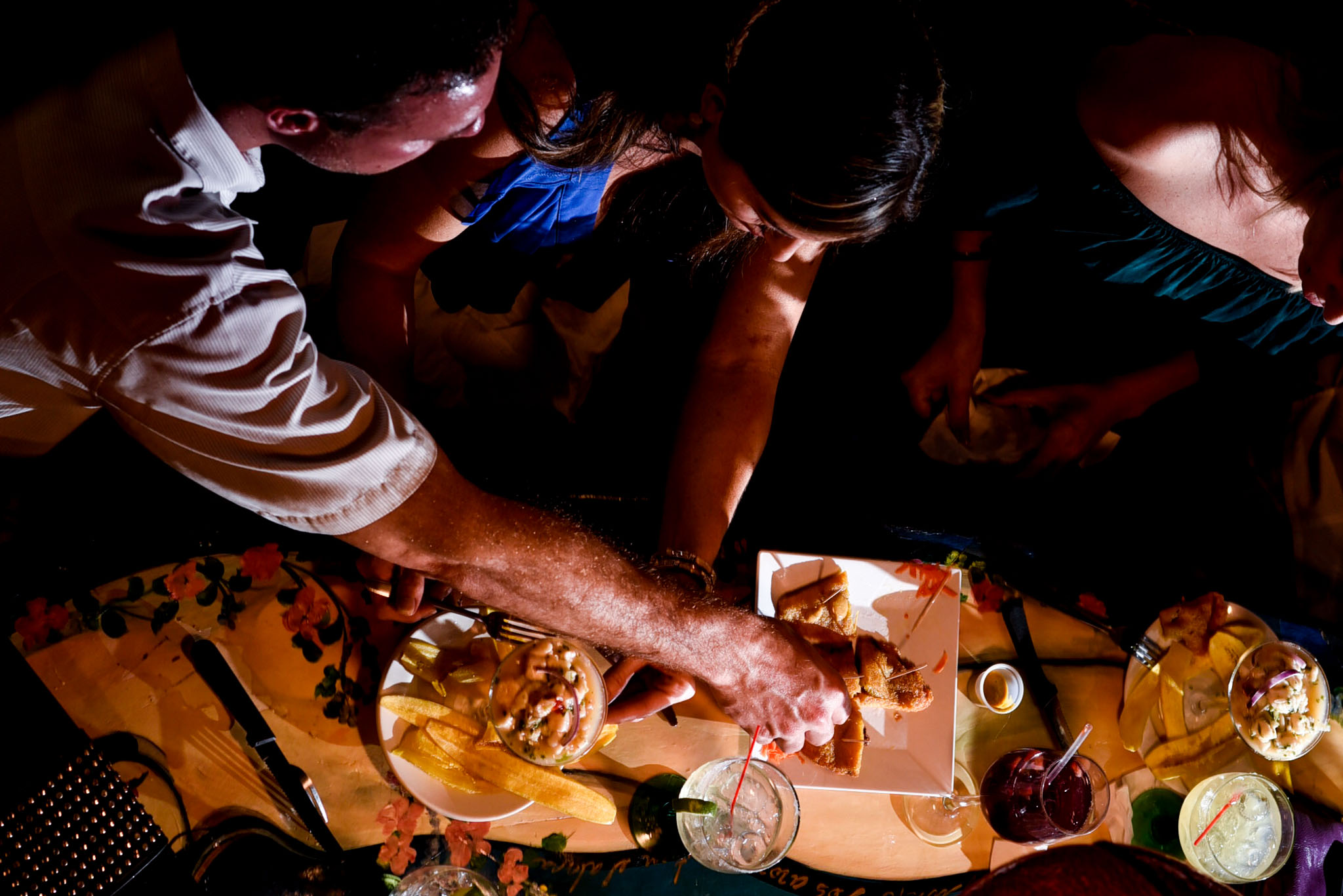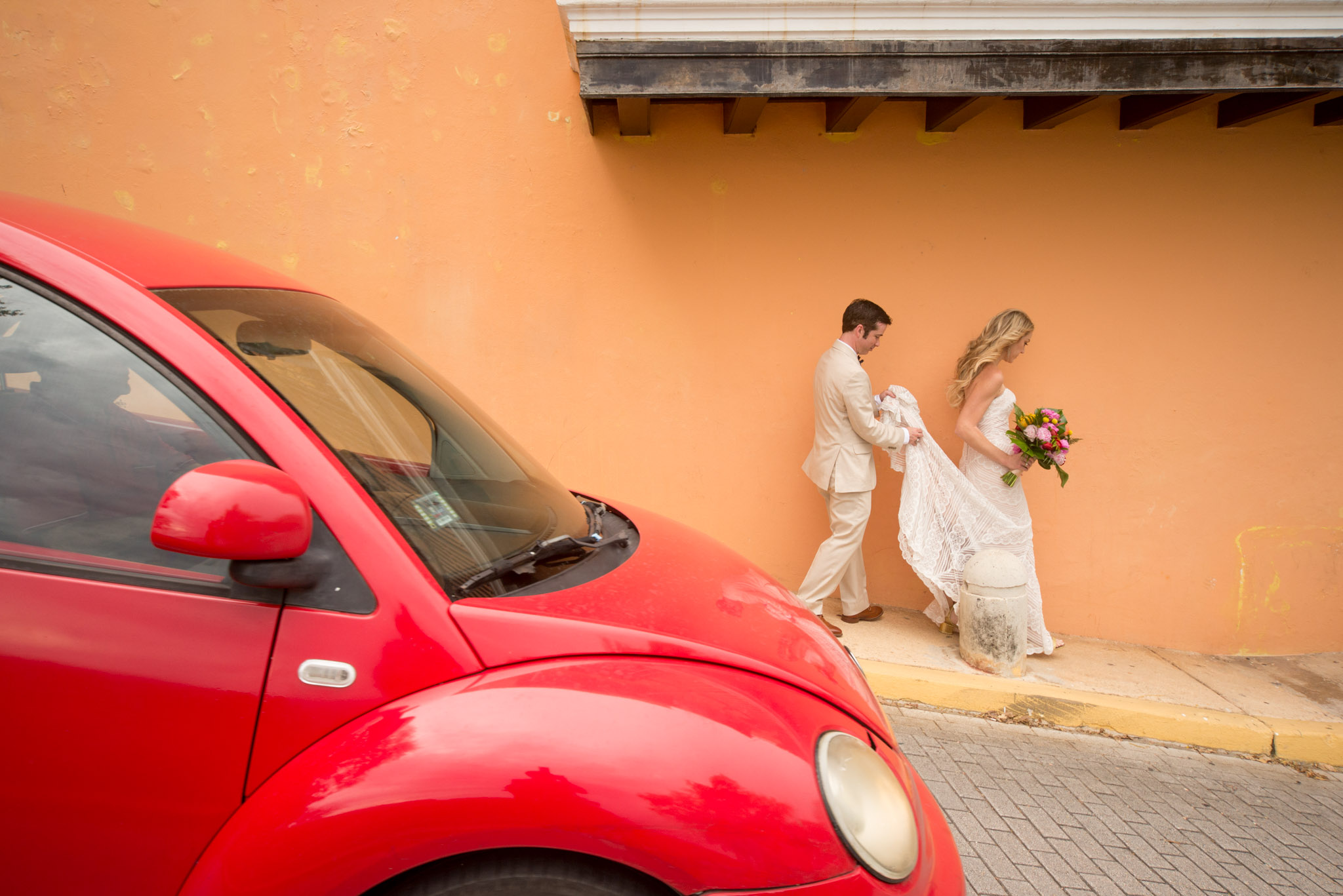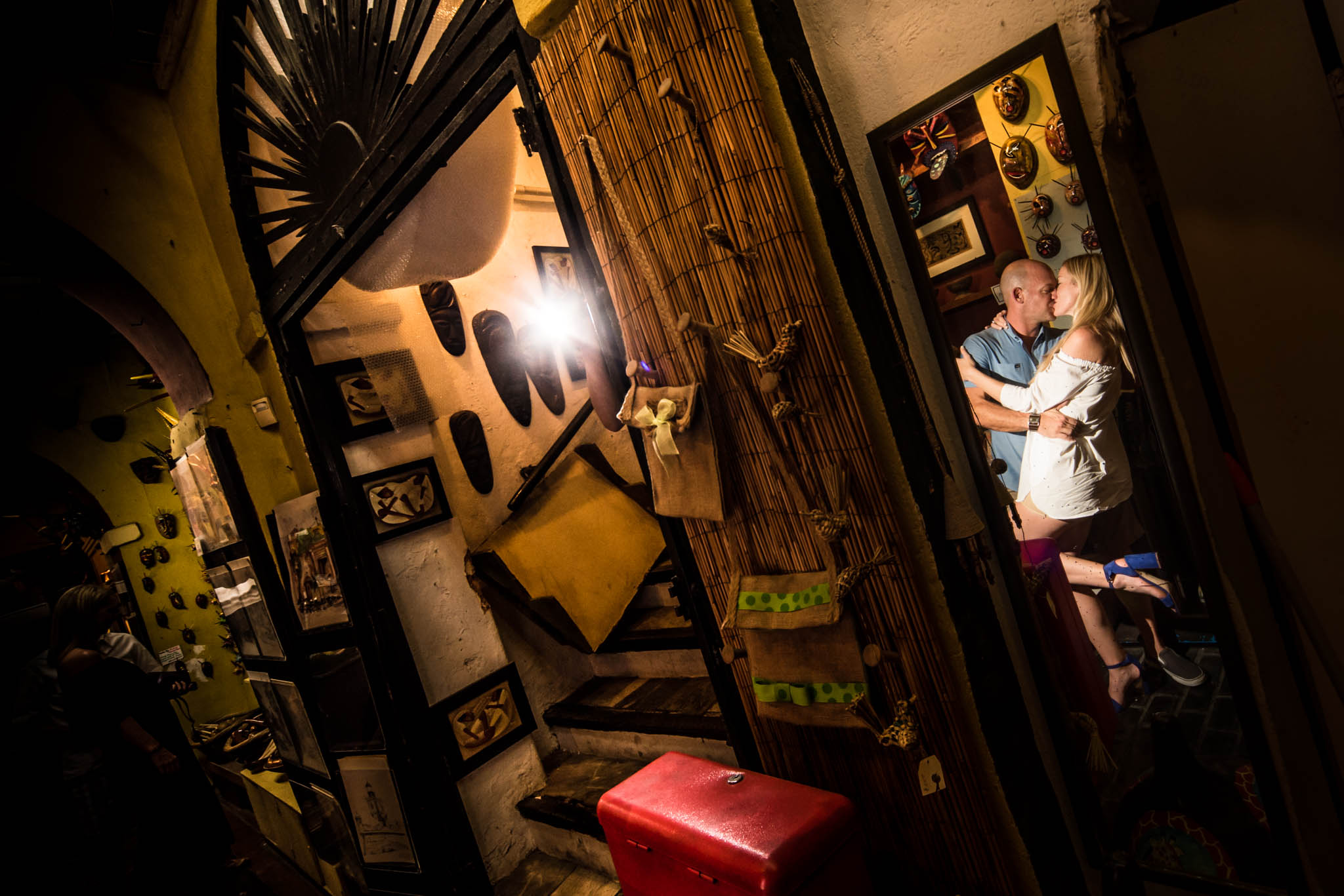 We arrived to El Convento San Juan on Friday, when we checked out some of the spaces, and walked around the surrounding streets looking for interesting sights. After that we made our way to Cafe Punto, for their rehearsal dinner. Cafe Punto is a really neat space, filled with art, food, and plenty of hidden little rooms and walkways, in typical Old San Juan style. Their rehearsal dinner was great. We had a chance to meet the family, they all had a good time and since their group put the space at capacity, everyone was nice and up close and personal. We selected a handful of our favorite captures and posted them the next morning before the wedding, to give them a preview of their collection.