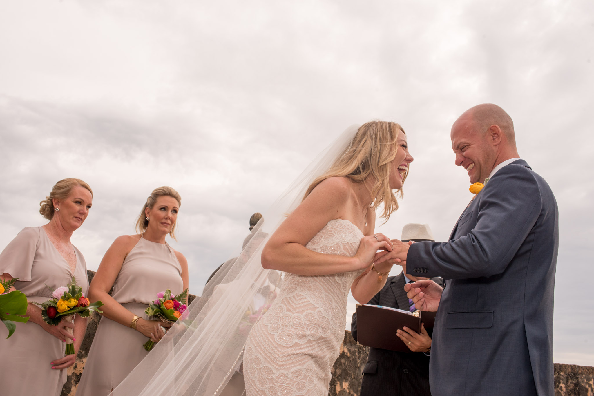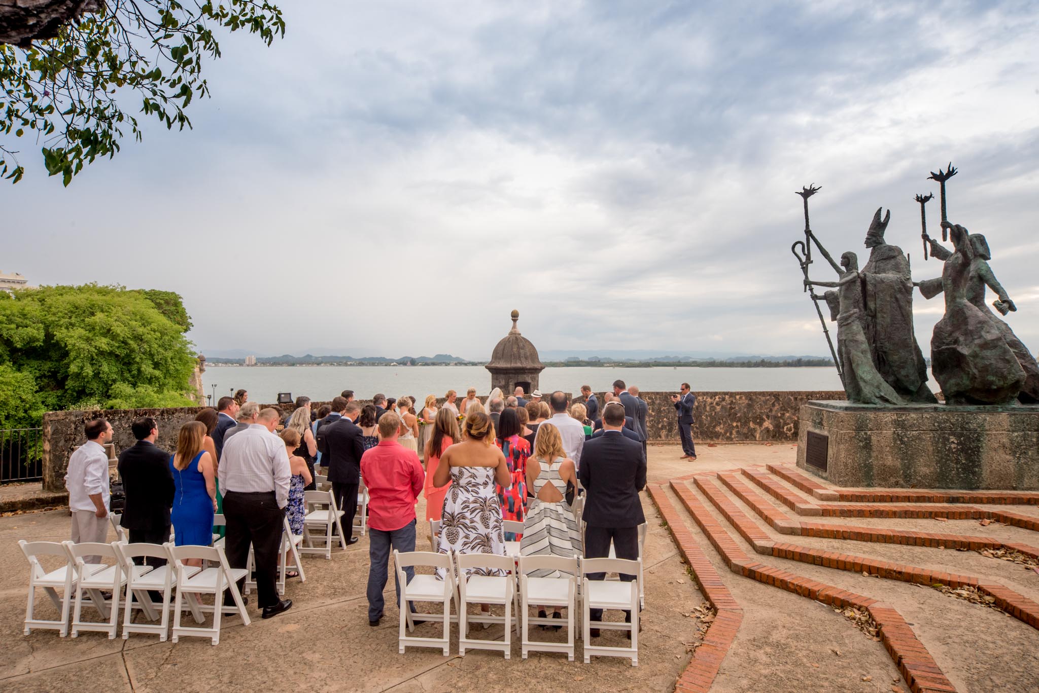 Their wedding ceremony took place at La Rogativa, a statue alongside the waterfront. Their reverend performed a beautiful ceremony. We had beautiful light cloud cover and a gentle cool breeze which kept everyone nice and comfortable despite their formal wear. Immediately after their ceremony a plenero band arrived and we had a parade back to the reception at El Convento. Their celebration was an absolute blast, and it was a pleasure to be able to capture Jene and Dennis’ special day in a location as amazing as El Convento. Once again, feeling blessed and grateful to be wedding photographers in Puerto Rico.