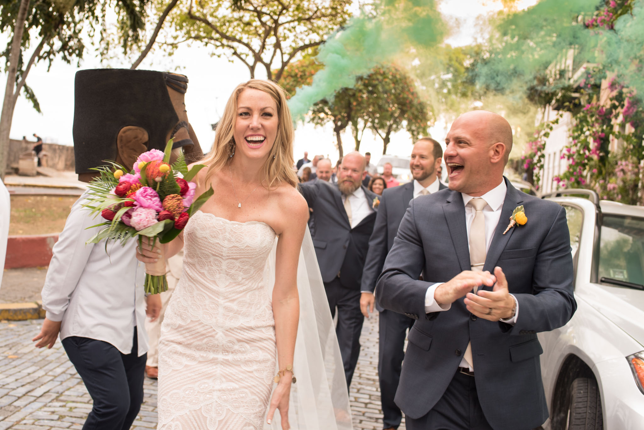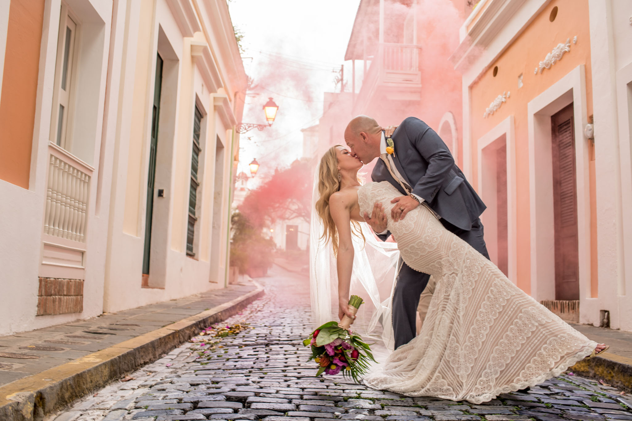 We had the pleasure of meeting Jene and Dennis at El Convento San Juan last summer while they were in town looking at venues and meeting other wedding professionals. We immediately hit off on our conversation with them, talking about their preferences in art, showing them galleries of our recent work, and talking about how we interact throughout the day, especially during the dance party. Jene and Dennis were planning an epic celebration, and they loved our attitude towards getting involved in the party. We were thrilled when they told us they wanted us to be with them for their celebration, and were really looking forward to working alongside Beatriz Collazo and her team.
