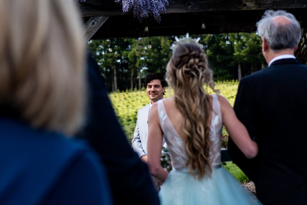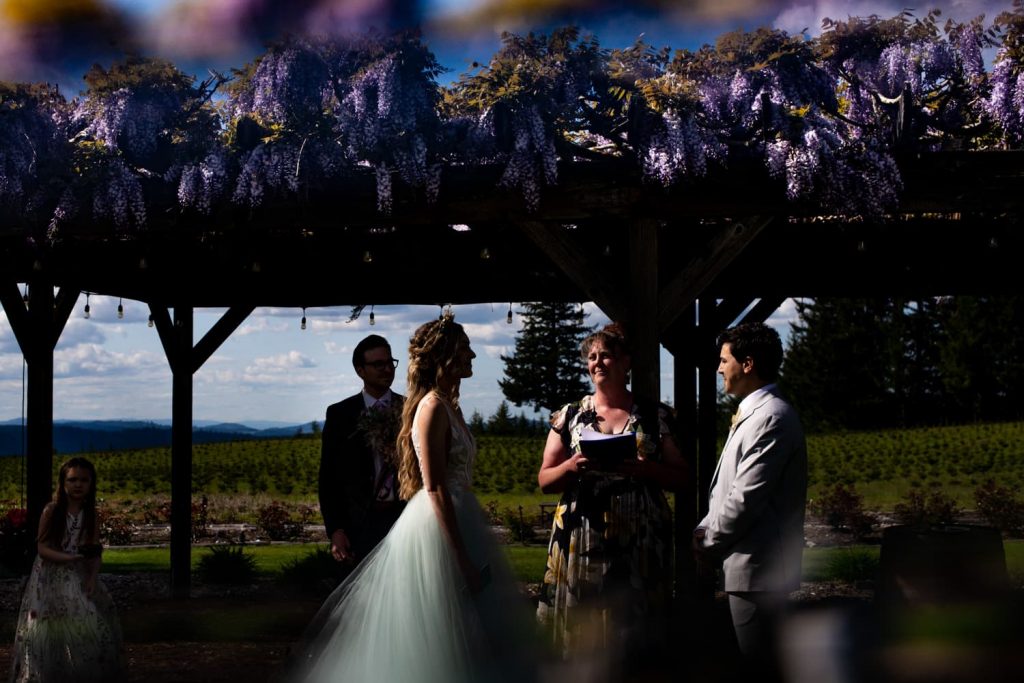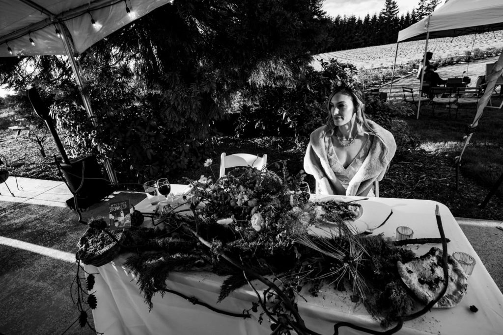 Their wedding was at Wonser Woods Estate in Estacada, Oregon. Wonser Woods is surrounded by young Christmas trees as well as a vineyard and is an absolutely spectacular venue. Jean Wonser was an absolute pleasure. She immediately introduced herself, showed me around the property, and helped me throughout the day with anything I needed. This was also my first wedding working with Julie of Gratitude Event Planning, and she absolutely delivered. I knew even before arriving that things were on the right track, as she sent out preliminary timelines and checked in with me to make sure everything would work on my end. It may seem small, but these kinds of little details set the good wedding coordinators apart from the great. On the day of, things went fantastically, the venue and the reception space were gorgeous.
